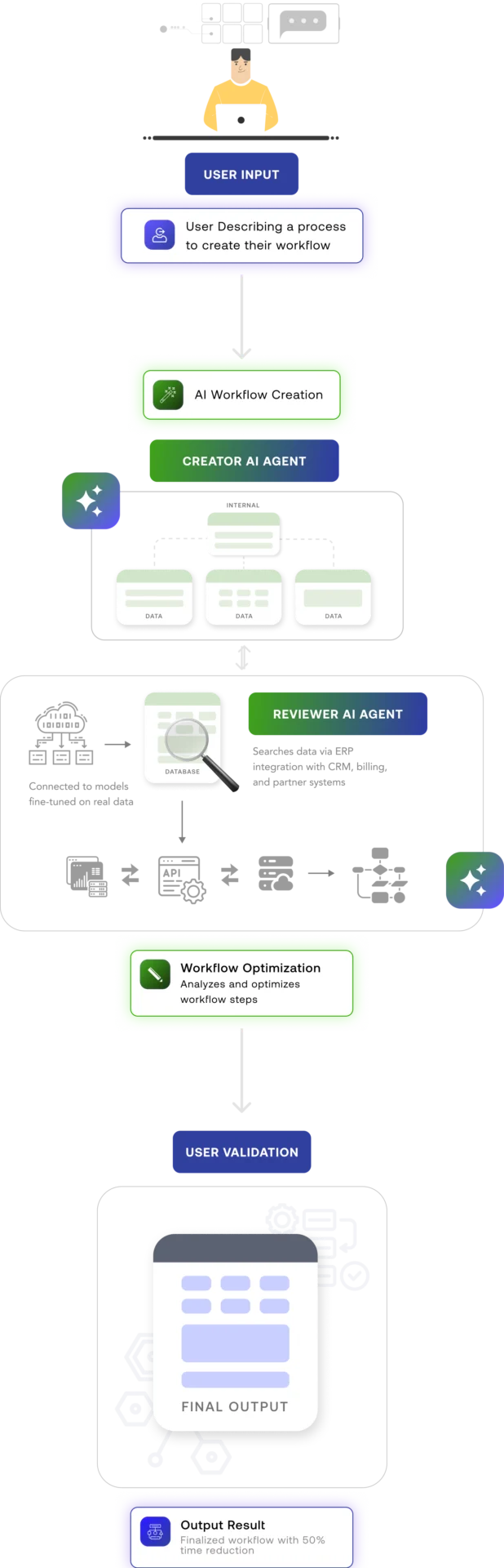 Our intelligent AI agents let you iterate and reiterate till your workflow is optimized precisely to your needs.